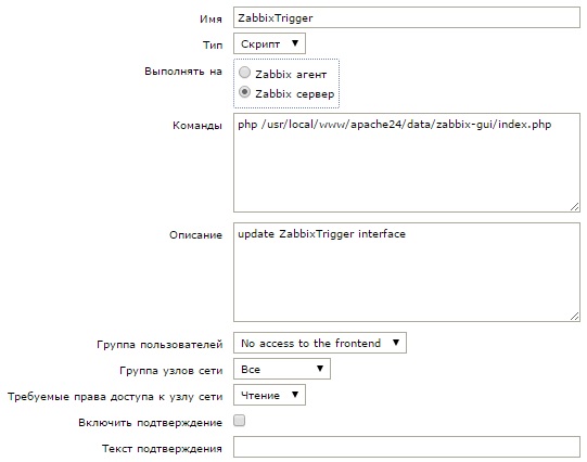 В разделе операции прописываем запуск нашего скрипта