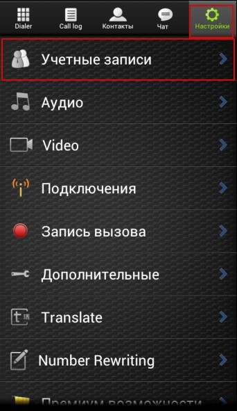 2.Запускаем приложение и выбираем вкладку Настройки—Учетные записи
