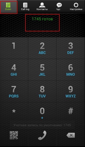 Если все сделано верно аккаунт будет подсвечен зеленым цветом как изображено на скриншоте. Теперь можно совершать звонки.