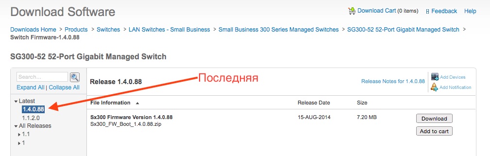 Так же как и в SG300 сразу на последнюю обновиться не получилось, потому до последней на сегодня версии