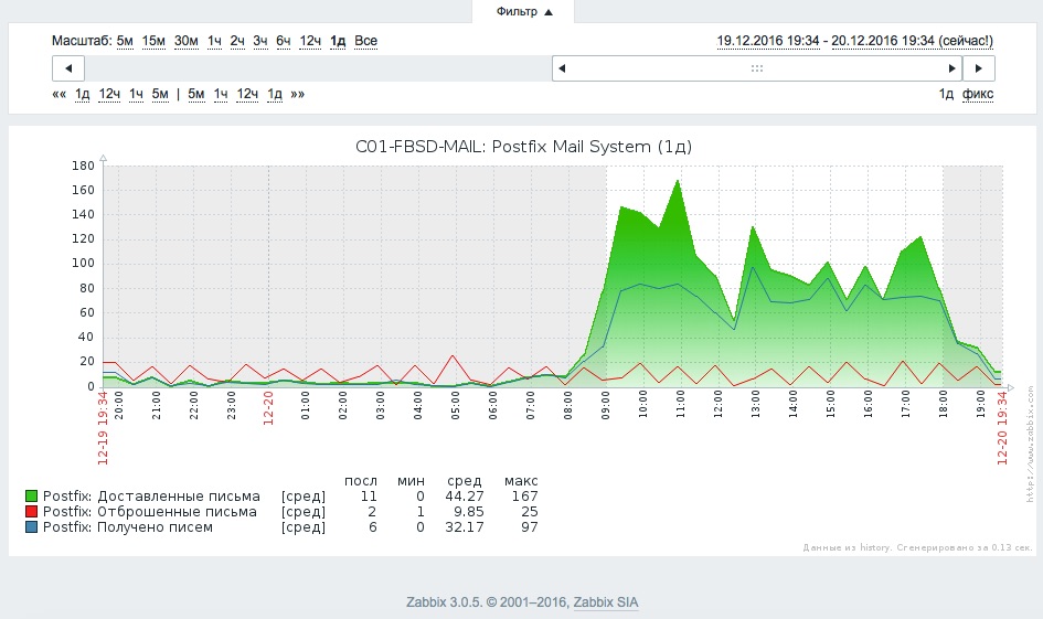 Год 2016. Мониторинг работы почтового сервера на базе postfix.