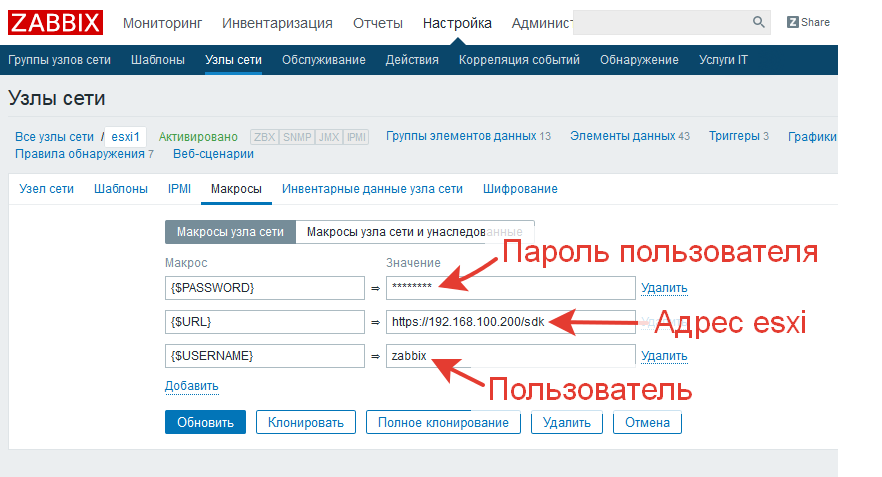 Теперь переходим в Zabbix - что ты сбор данных заработал Zabbix должен быть собран с опцией VmWare, а в файле конфигурации должны быть раскоментированны следующие строки:
